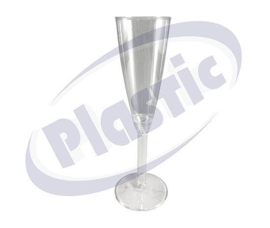 Чаша за шампанско две части 150 мл., изработена от прозрачен полистирен (PS), предлага изключителна комбинация от блясък, елегантност и издръжливост. Тя съчетава красотата и стила на кристалните чаши със практичността на пластмасовите изделия.